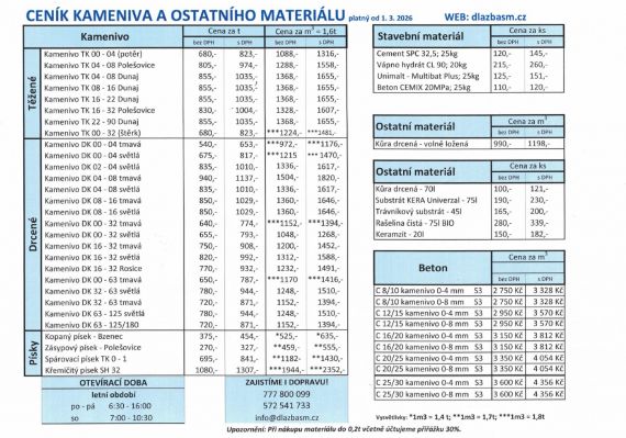 Ceník Ceník kameniva, betonových výrobků a ostatního materiálu. Ceník kameniva, betonových výrobků a ostatního materiálu ke stažení zde
