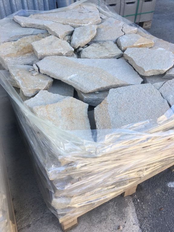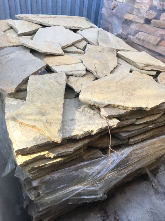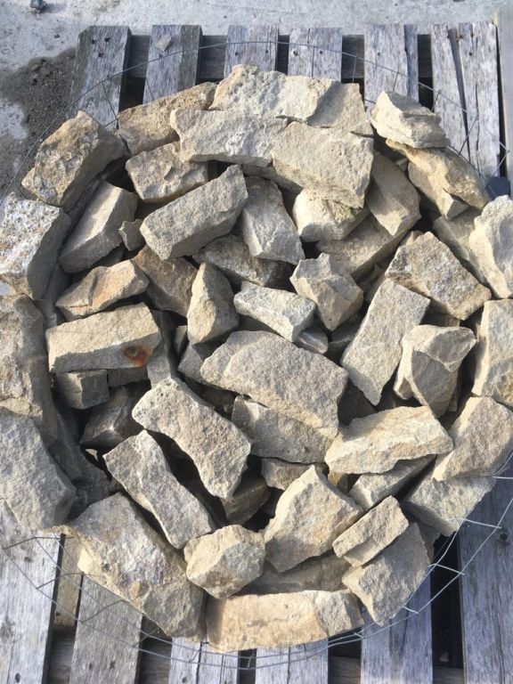 Cena je platná při odběru celé palety ! 520.66 Kč/m2 (630.00 Kč/m2 s DPH) Pískovec štípaný tl. 2 - 4 cmobklad/výplň gabionových sítí/obrubník