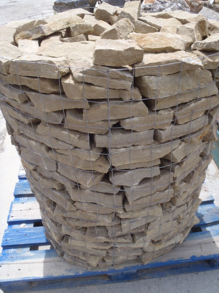 Cena je platná při odběru celé palety ! 769.00 Kč/m2 (930.49 Kč/m2 s DPH) Pískovec štípaný tl. 2 - 4 cmobklad/výplň gabionových sítí/obrubník